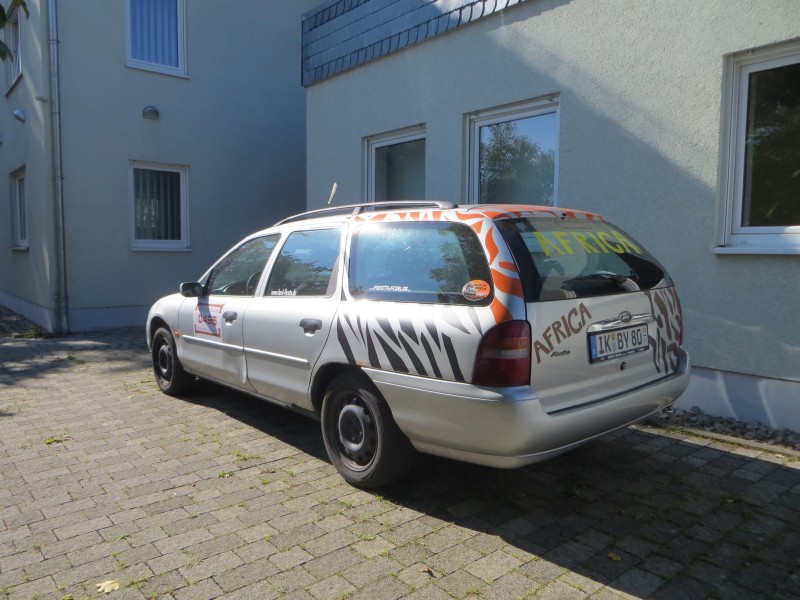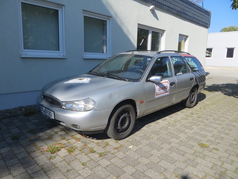 Mein Mitfahrer und ich fahren natürlich Ford, das hat sich bisher auch als ganz gut herausgestellt. Das Auto ist ein Ford Mondeo Mk2 Kombi mit normaler Ausstattung (Fensterheber vorn, Klima, Airbags, ABS), ohne viel sonstigen SchnickSchnack aber mit viel Platz. Ich habe mich für die "Neu-TÜV"-Variante entschieden und einiges geschweißt und repariert, insgesamt hielten sich die Kosten, da ich es selbst gemacht habe, aber in Grenzen, TÜV gabs ohne Mängel und die ersten Fahrten haben außer einer scheinbar verschlissenen Kupplung (noch?) nichts negatives zu Tage gefördert.
