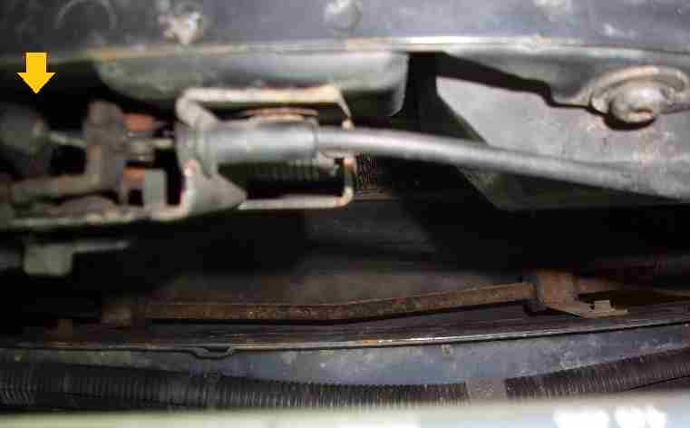 Es geht vermutlich um die Sicherheitsentriegelung unter der Motorhaube (die hat gelbes Plastikteil als Griff) ... also wenn man die Entriegelung im Fußraum betätigt, dann kann man mit dem "gelben Griff" die Motorhaube komplett entriegeln und öffnen.