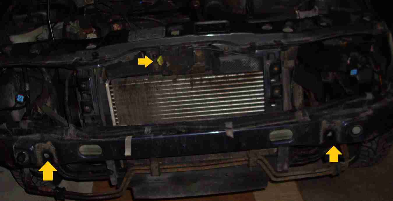 Wenn ich mir den Fiesta von unten vorstelle wüßte ich keinen Weg wie man mit angebauter Stoßstange da hin kommen sollte ... eine Möglichkeit wäre vor dem Kühler wo auch die Servoleitungen verlaufen ... aber das geht m. E. nur mit abgenommener Stoßstange deren 2 Schrauben sind im Bild markiert.