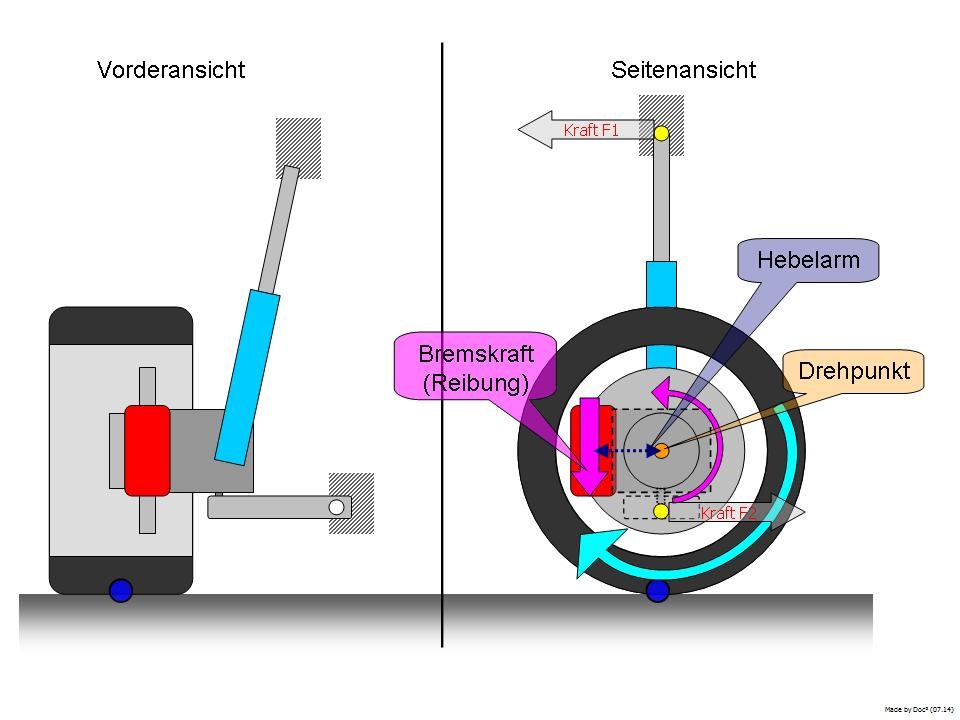 Um aber zu verstehen welche Kräfte beim Bremsen wirken habe ich eine Skizze an diesen Beitrag angehangen, welche die Bauteile übersichtlich darstellt.