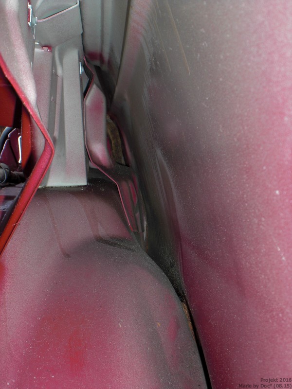 Andere Anbringungsmöglichkeiten, wie der Blechteil der Rücksitzlehne oder die Radkästen wollte ich nicht nutzen. Da im Radkasten zu viel Schmutz unterwegs ist wollte ich hier auf keinen Fall einen weiteren Anhaltspunkt für den Dreck geben und die Rückbank wird ja noch restlos entfernt.