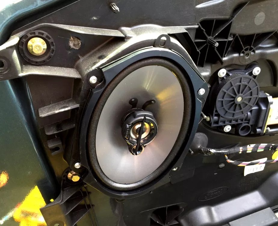 Die Lautsprecher sitzen in ihren Serienaufnahmen weiter hinten als die originalen mit dem dicken Plastikrahmen. Dadurch schließen sie nicht mit den Verkleidungen ab, was zur Folge hat, daß sich der Sound nun in den Türen verteilt.