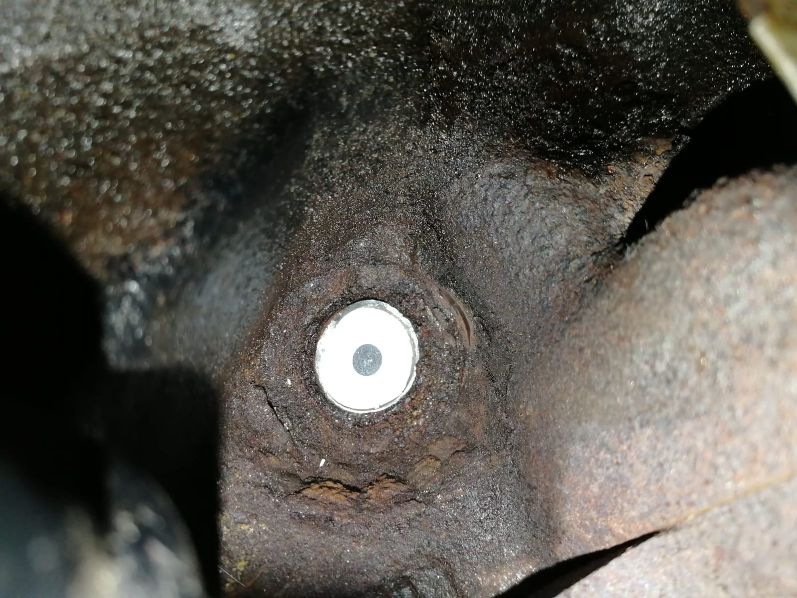 Heute Nachmittag habe ich dann den Motor gestartet und die Keramikfüllung ist rausgeflogen, sodass ich ein offenes Loch im Zylinderkopf hatte. So bin ich mit einem extrem unruhigen und extrem lauten Fahrzeug 20 min im Stau mit ganz viel Sorge zu einer "Underground"-Werkstatt gefahren. Auf dem Weg haben sich alle Leute - ob Fußgänger, Fahrradfahrer oder sogar Insassen in anderen Autos - nach mir umgeschaut. In der Werkstatt angekommen hat ein Typ das heiß gemacht, in den Hohlraum der Zündkerze geschweißt, eine Mutter drauf geschweißt und versucht, die Zündkerze abzudrehen --> abgebrochen.