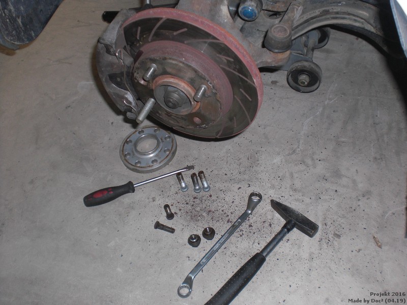 Um die 195er Räder auf der Vorderachse zu montieren werden die 5 mm Spurplatten nicht reichen.