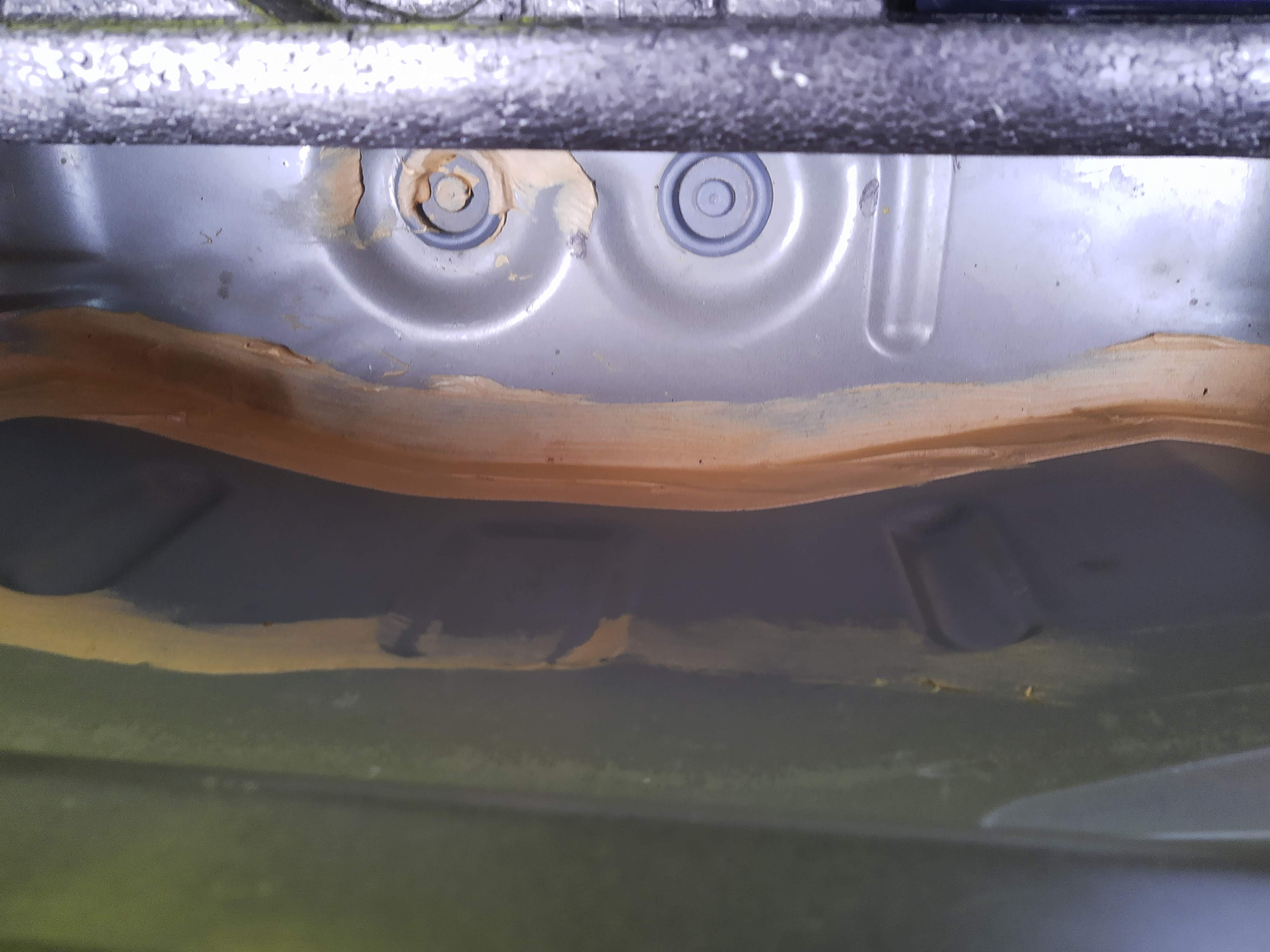 Da schätze ich, das diese Abdichtung nachträglich vom FFH gemacht wurden, weil die sind normalerweise mitlackiert ab Werk. Vieleicht wg Wassereinbruch in der Mulde. Verformungen irgendwelcher Art sehe ich auf den Bildern nicht, die auf einen Unfall hindeuten.