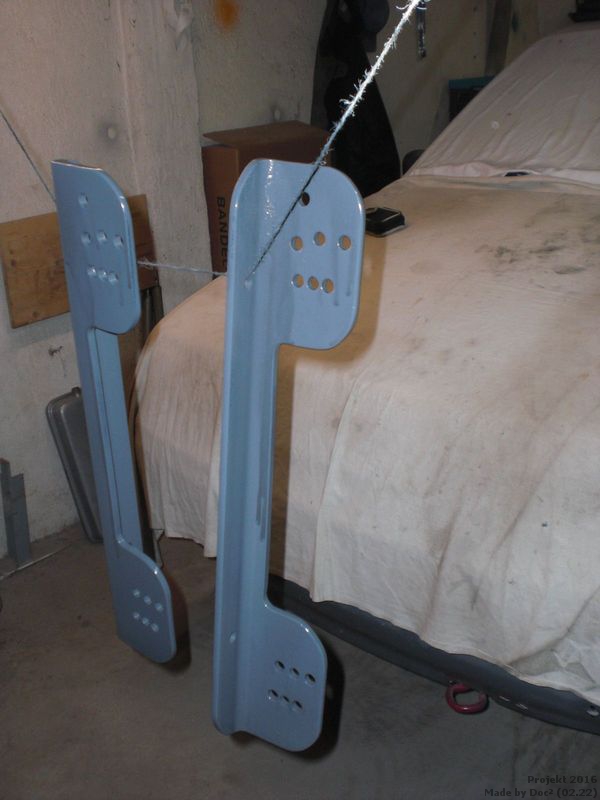 Nachdem ich schon im Juni eine Methode gefunden habe die Käfigfußplatten vom Hauptbügel auszutauschen, habe ich nun die neuen Bleche vorbereit und auch verschraubt.