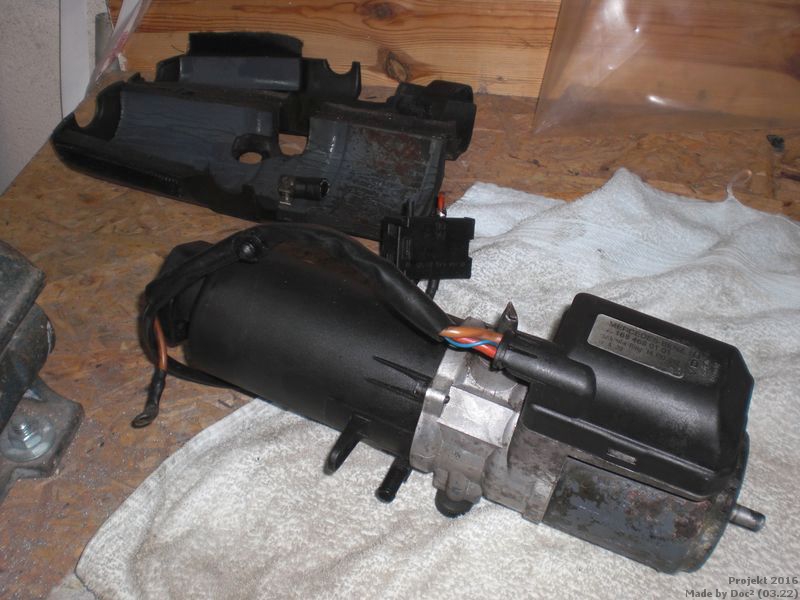 Einen Einbauort für die E-Servo habe ich versucht im Motorraum zu finden. Aber leider ist im Bereich vom Dom auf der Fahrerseite, oder an der Spritzwand nicht wirklich viel Platz. Irgendwas ist immer im weg. Deswegen habe ich vorerst beschlossen den Pumpe am Platz vom original Servoöl-Vorratsbehälter zu verschrauben. Wann das passiert ist aber noch offen.