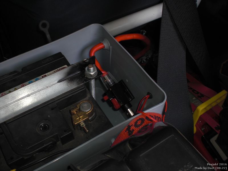 Die neue Sicherung ist schaltbar. Den bis lang verbaute Batterietrenner habe ich ausgebaut. Zusätzlich kommt nun auch noch ein Hauptschalter ins Armaturenbrett.
