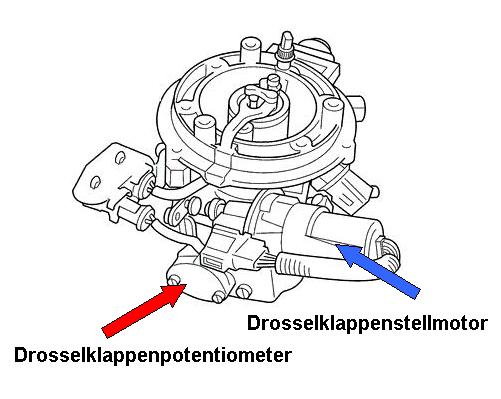 Vor dem Stellmotor ist ein Hebelchen mit einem Teller dran, dieser berühert, wenn die Drosselklappe zu ist, den Stellmotor und bei mir war auf diesem Teller eine