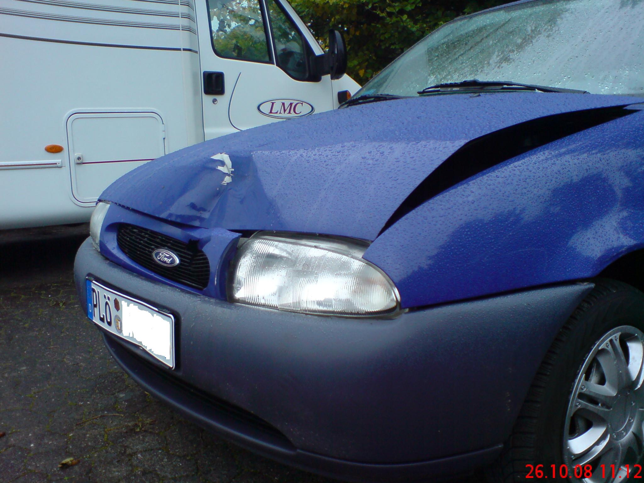 Ich habe meinen Fiesta genau drei Tage, und heute habe ich einen Hirsch mitgenommen!!! Der Fiesta ist nur Haftpflichtversichert, deswegen bleibe ich auf den Kosten sitzen! Ich hoffe, nur der Kühlergrill und die Motorhaube haben etwas abbekommen, der Stoßfänger sieht noch ganz aus, was unter der Motorhaube eventuell kaputt gegangen ist werde ich mir Montag mal anschauen!