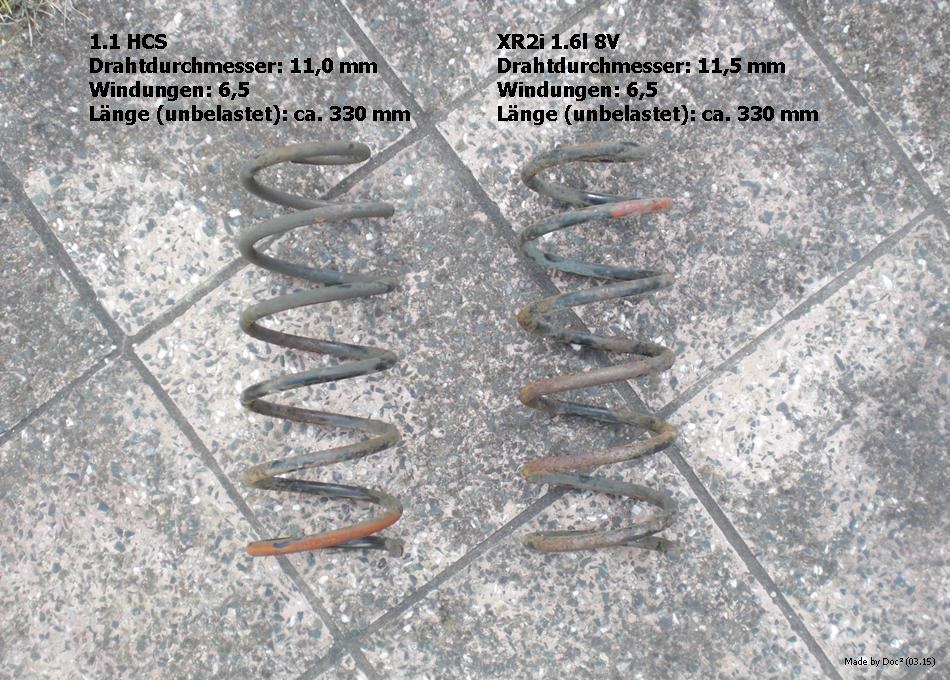 Wenn man das 1.1er und das XR2i Fahrwerk miteinander vergleicht stellt man fest das es soweit gleich ist bis auf den halben Millimeter unterschied beim Drahtdurchmesser.