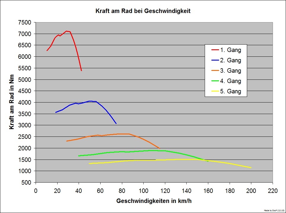 Anhand dieser kann man erkennen wie viel Kraft bei welcher Drehzahl zur Verfügung steht. Außerdem noch die Übersetzung vom Getriebe und die Masse vom Rad.