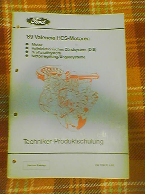 Anlässlich zur Neueinführung der überarbeitet HCS Motoren im Fiesta wurde für die Ford Vertragswerkstätten ein Trainings und Service Heft gedruckt, die: Techniker Produktschulung ´89 Valencia HCS-Motoren (CG 7282 D 1/89).