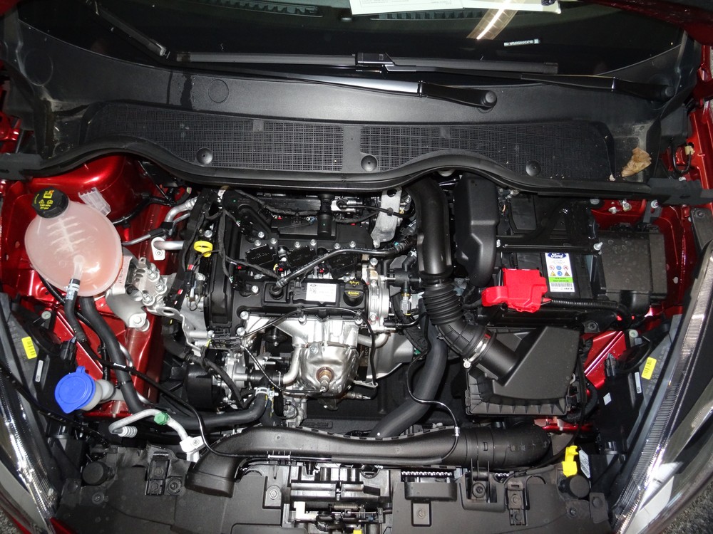 Nun gut, der kleine 1,1er hat keinen Turbo, deswegen auch keinen Ladeluftkühler, aber im direkten Vergleich ist auch im Motorraum vom stärkerem 1,0er trotzdem noch etwas Platz.