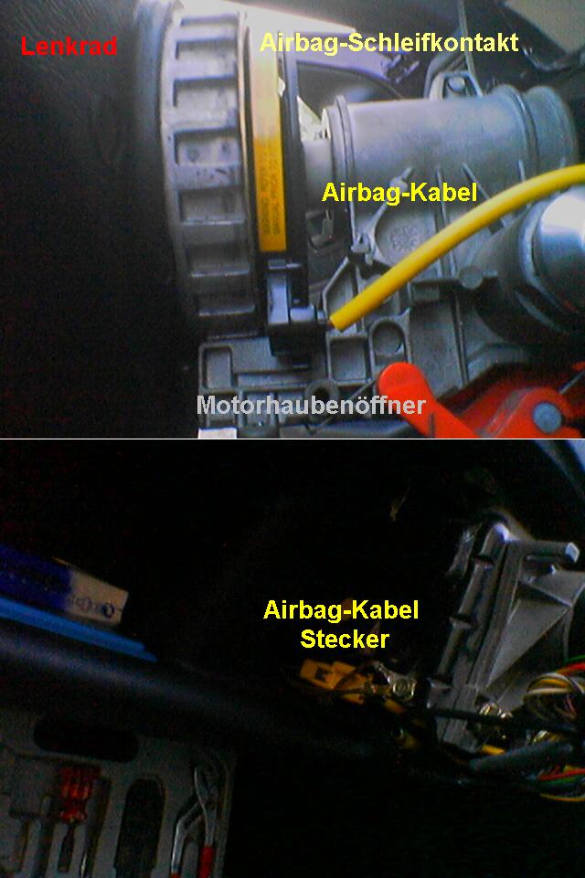Somit währe sicher gestellt das der Airbag nicht auslösen kann, während man an seiner Verkabelung herumbastelt.