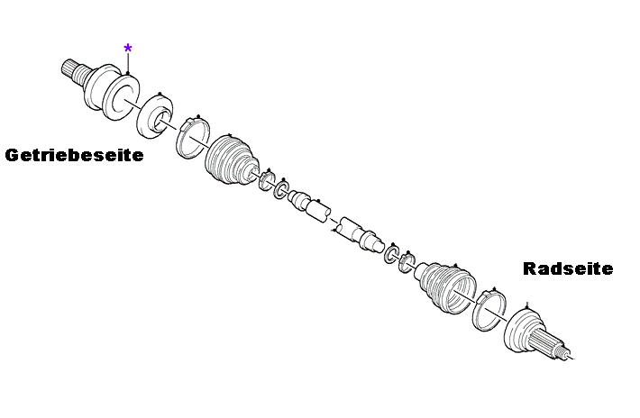 Wenn du eben nun vom alten Getriebe diese "Glocke" mit abmontierst und ins neue Getriebe steckst sollten nun auch wieder die alten Antreibswellen passen.