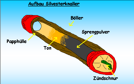 Er hat hinten einfach das Ende von dem Böller abgerissen und denn roten Ton bis zum dunklen Schiesspulver rausgekrümelt.
