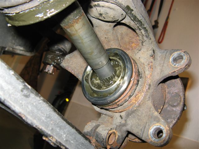 ich muß die radseitige Gelenkwellenmanschette austauschen, habe aber Probleme damit, die Antriebswelle aus dem Antriebswellenstumpf zu ziehen. Wie ich gelesen habe, ist da ein Sicherungsring unter dem Fett. Den kann ich im Gelenk auch mit einem Schraubenzieher tasten, ich weiß aber nicht, wie ich den lösen kann. Habe Bedenken, dass ich den weiter nach innen stoßen könnte, so dass ich dann nicht mehr dran komme. Muß man den in jedem Falle zuerst lösen oder kann man nicht auch die Achswelle nach Abnahme der Zentralmutter mit einem Abzieher nach innen aus dem Achswellenstumpf drücken. Dazu habe ich das Kugelgelenk des Querlenkers schon mal ausgehängt. Müßte man dann auch noch das Lenk-Schwenklager am Spurstangenkopf lösen? Ich würde mich über eure Hilfe sehr freuen. Ich füge (erstmals) einige Bilder an, hoffentlich klappts.