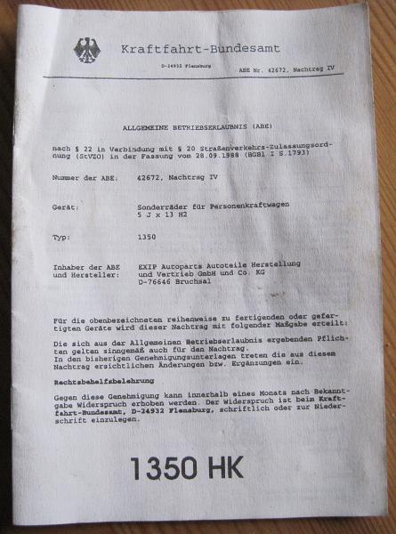 War Freitag mal wieder beim Schrotti, und habe in einen Ford-Ka diese ABE gefunden. Wer sie gebrauchen kann bitte melden.