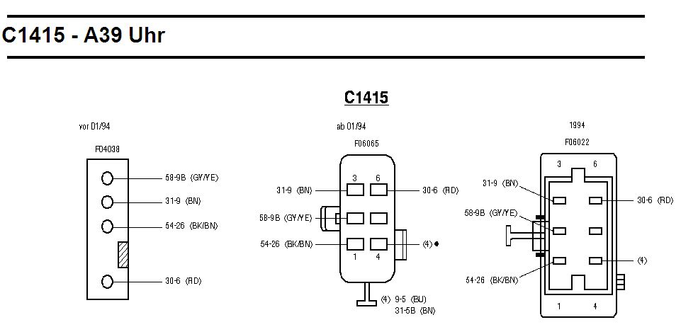 hat mal jemand ne Steckerbelegung für ne 94er Uhr ohne Wegfahrsperre, die hat nicht den alten länglichen Stecker sondern schon nen neueren, aber eben ohne Wegfahrsperre.
