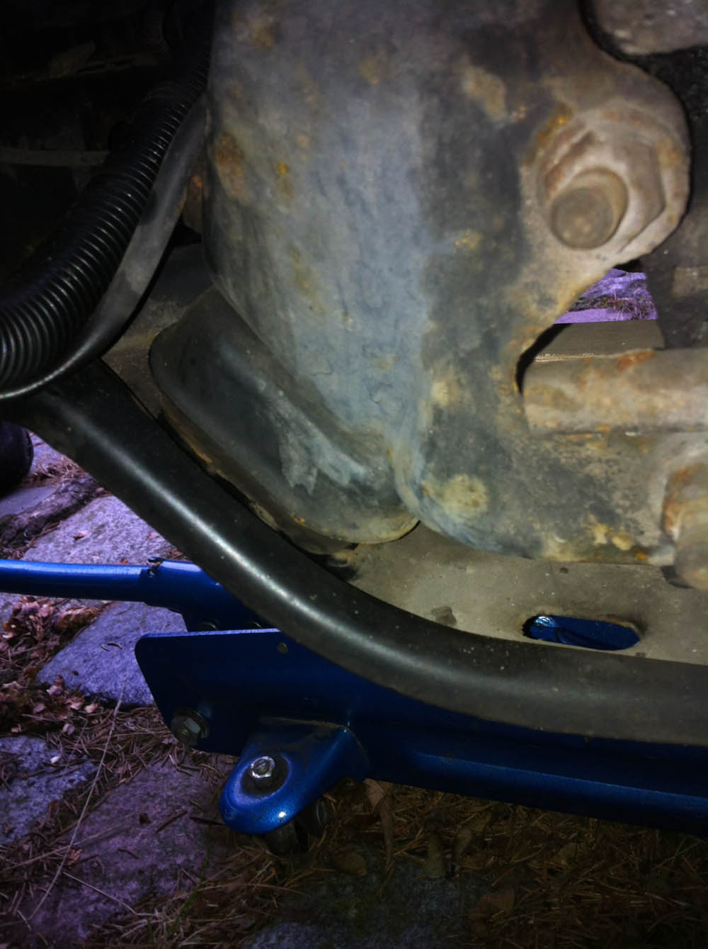 So, hab das Getriebe aufgebockt und gesehen, wie sich das Lager zum Wagenvorderen angehoben hat.