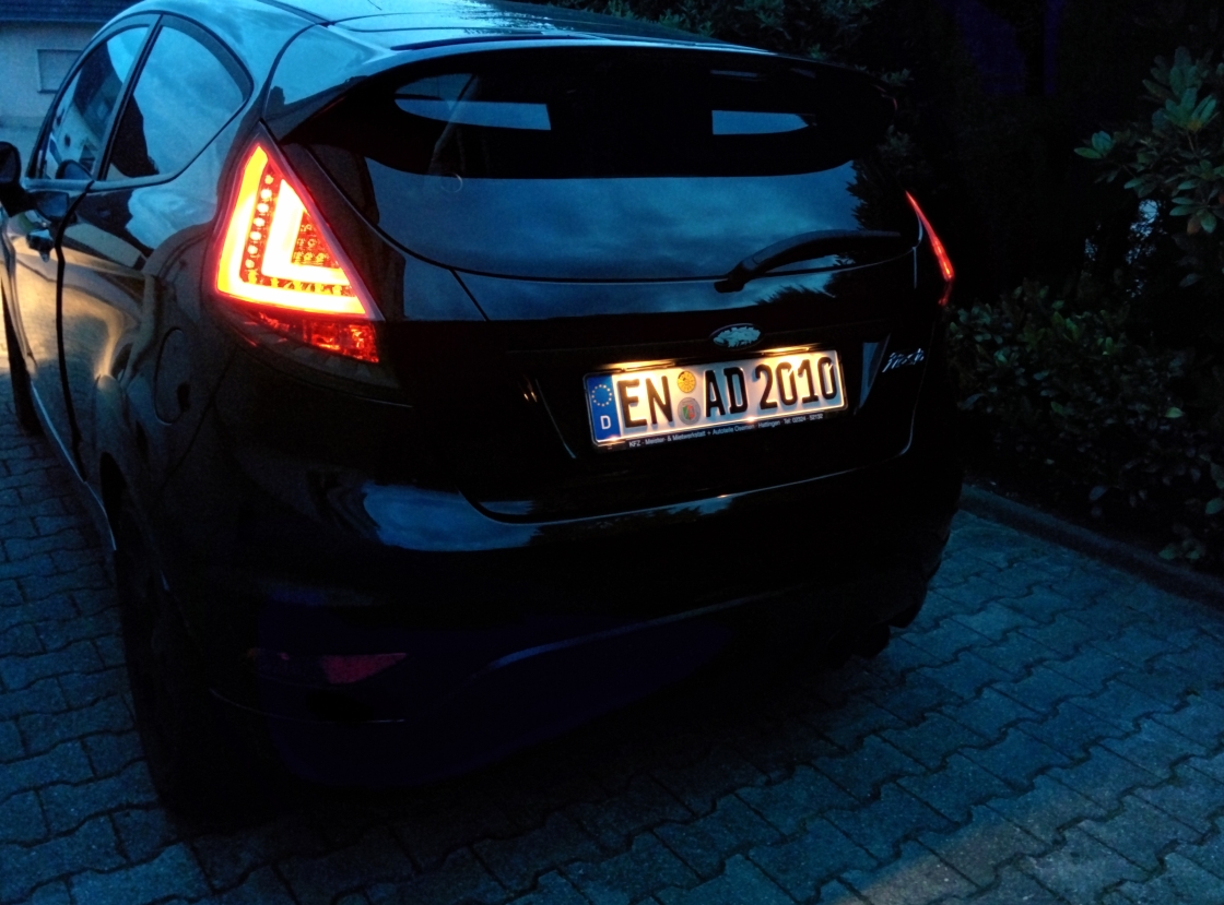 Ach die Lämpchen habt ihr ja noch nicht gesehen. Kein gutes Foto, aber ist nicht so einfach, eigentlich sieht man nur die roten Balken bei normalem Licht und beim Bremsen geht daneben die Lichtreihe aus einzelnen Led hell an,hier glimmen sie nur mit,ist nicht so deutlich zu sehen wie es auf dem Foto rüber kommt. wie gesagt man sieht eigentlich nur die roten Lichtstreifen