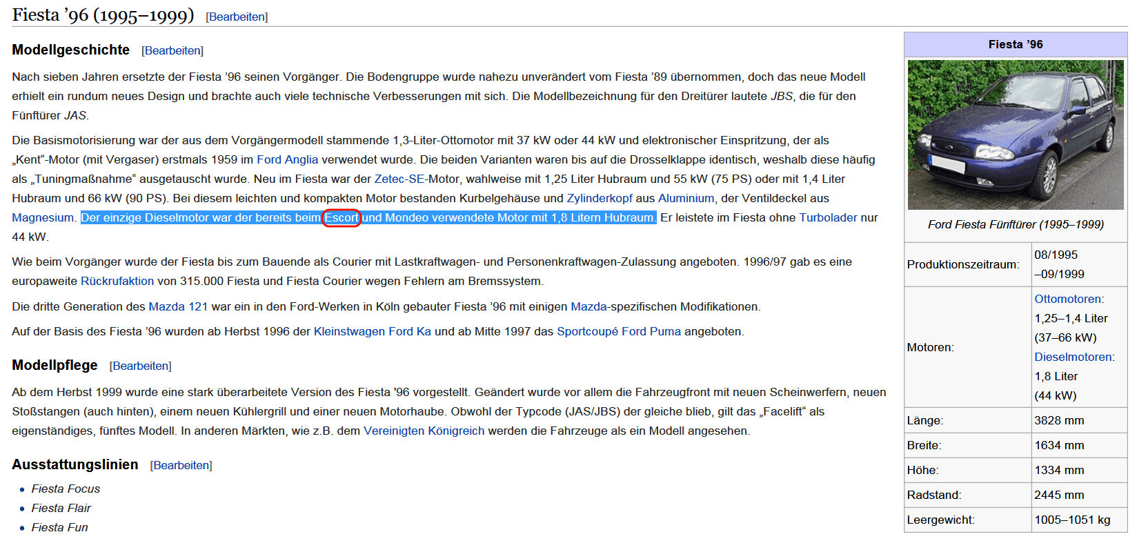 Oder sinngemäß: "...später hatten die Motoren "Endura-DE" auf dem Ventildeckel stehen, was erstmals im Fiesta MK4, Escort MK 6 und Mondeo MK2 der Fall war."