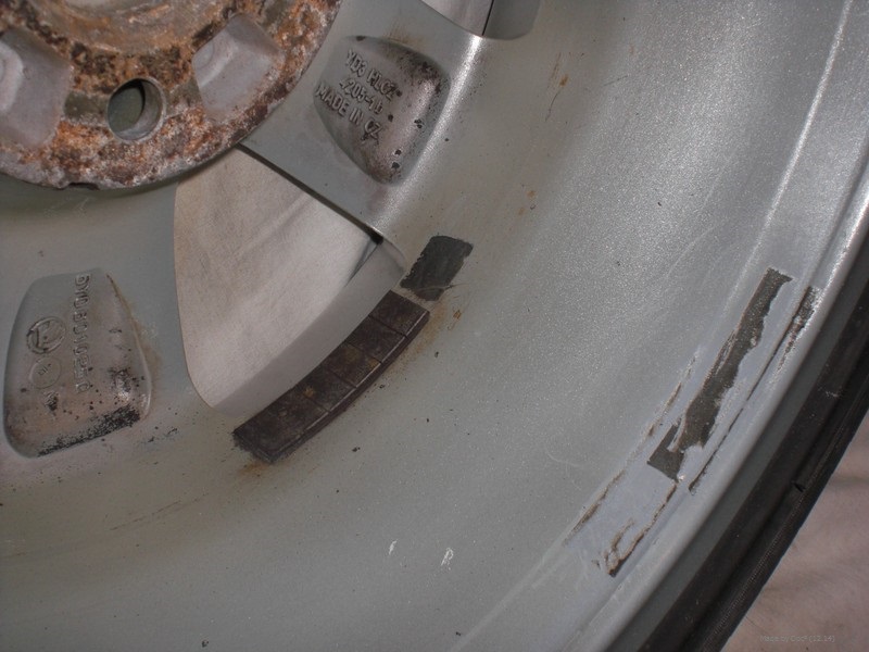 Die Gewichte wurden beim letzten Wuchten neu gesetzt und dafür mussten die alten Gewichte weichen – aber die schwarzen Kleberreste des Klebers sind geblieben.