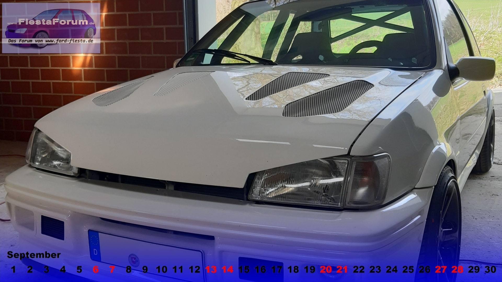 Das Januar Kalenderblatt schmückt dieses Jahr ein Fiesta Mk3 mit zahlreichen kleinen Modifikatioen welche sich zu einer wirklich stimmigen Optik aufadieren.