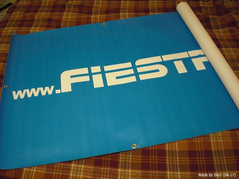 Diese wurde entweder irgendwo, zum Beispiel am Pavillion, aufgehangen oder vor die Autos gelegt. Somit war klar wer hier stand und wo man uns findet, weil eben die Internetseite auf der Plane stand.