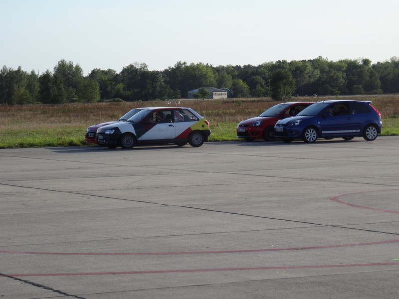 Ich musste vorab noch einmal intensiv an drei Nachmittag Schrauben um meinen Rallye-Fiesta wieder fahrbar für das Treffen zu bekommen. Das ich dann vor Ort zum Beschleunigungsrennen herausgefordert wurde und mich auch ein paar Leute fahren sehen wollten, war so zwar von mir nicht so geplant, aber gefahren bin ich dann trotzdem. Und wurde ein ums andere Mal immer wieder knapp geschlagen. Zwar konnte ich noch einen Escort (Mk4) RS Turbo hinter mir lassen, aber ein Fiesta ST150 (Mk6) und ein Escort (Mk5) RS2000 waren dann doch schneller als ich, sowie ein Fiesta (Mk3) mit 2,0 l. Im Nachhinein ärgere ich mich dann doch über die ausgeschlagene Möglichkeit gegen einen Capri mit angeblichen 250 PS angetreten zu sein. Nächstes Jahr, dann wieder mit den richtigen Reifen und ein paar kleineren Verbesserungen, will es wieder versuchen, falls nicht wieder etwas dazwischen kommt.