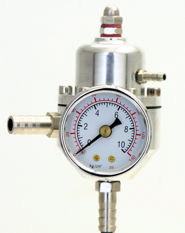 Beim 1,3er ist es so das die Benzinpumpe lustig mit ihren drei Bar Druck so vor sich hin arbeitet, das ist ja gut und schön und im Grunde ausrechend, aber die Anzeige von dem Benzindruckregler ist ja bei drei Bar noch lange nicht an ihrem Limit, sie geht ja bis 10 Bar (1 Bar= 1 Kg/cm²), dem entsprechend ist ja anzunehmen das man den Benzin druck auch soweit anheben kann, aber wofür?