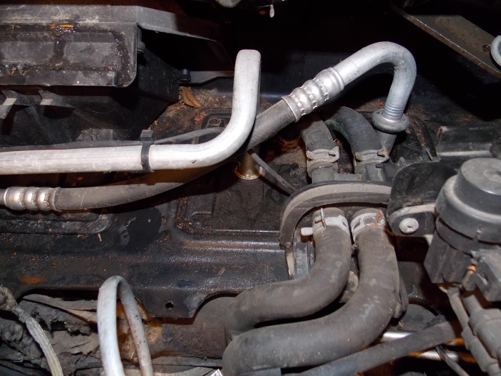 Dabei sammelt sich natürlich Kondenswasser, was im Idealfall mittig unter dem Armaturenbrett in dem Lüftungskanal aus dem Kondenswasser-Schlauch unter dem Fahrzeug heraus geleitet wird.